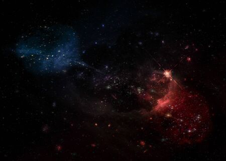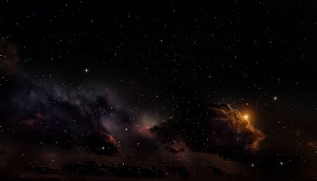 Star field and nebula in deep space many light years far from planet Earth.