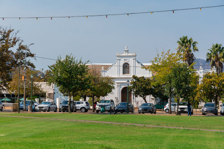 Franschhoek, Western Cape, South Africa. Dec 2019. Dutch Reform Church in the main street of Franschhoek a popular tourist town.