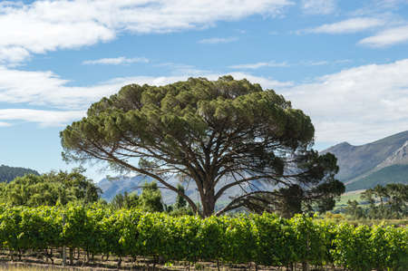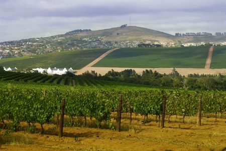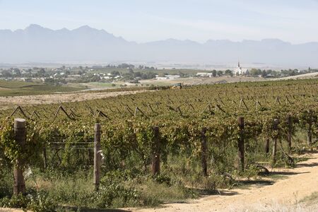 A Stellenboscsh panorama with tipical rows of vines, South Africa