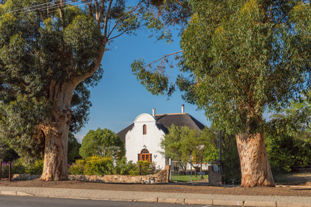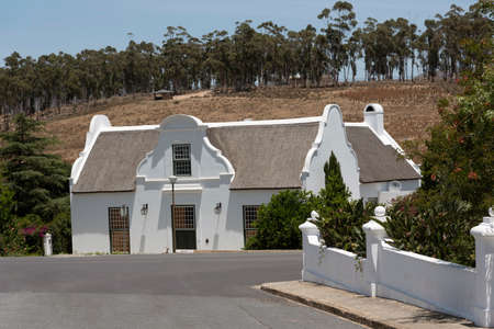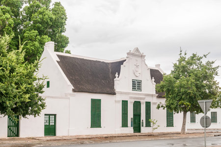 Tulbagh, Western Cape, South Africa. 2019. Thatched Cape Dutch style home in central of Tulbagh a historic town.