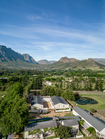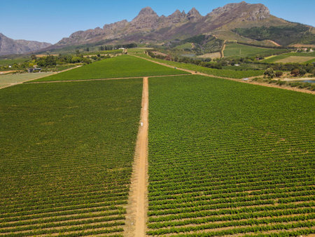 Drone view at vineyards near Stellenbosch on South Africa