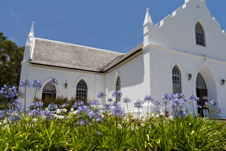 White church with allium in Franschhoek, South Africa
