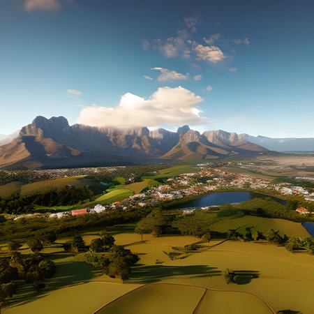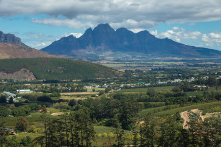 Scenic mountain landscape with vineyards, Western Cape, South Africa
