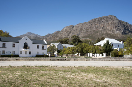 Panorama of the Congregational Church in Pniel, with background mountain Western Cape Province, South Africa