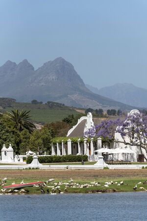 Stellenbosch, South Africa - February 02.2020: Building at the Lanzerac wine estate in Stellenbosch, South Africa
