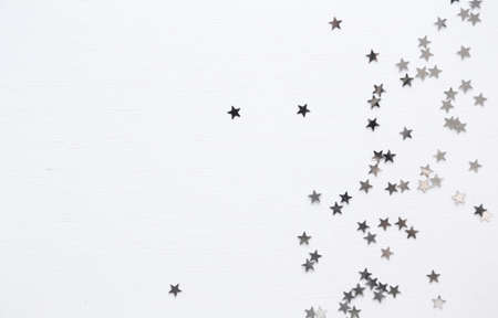 White minimal background. Silver stars top view, flatlay