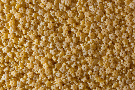 Uncooked Stelline Pasta: A Culinary Canvas of Stelline Macaroni, Creating a Lively and Textured Background for Gourmet Cooking. Dry Pasta. Raw Macaroni - Top View, Flat Lay