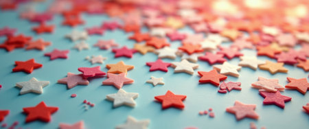 A delightful array of star-shaped confetti in shades of pink, red, and white creates a playful and festive atmosphere against a bright blue backdrop. This charming scene evokes feelings of celebration and joy, perfect for parties, events, or creative projects.