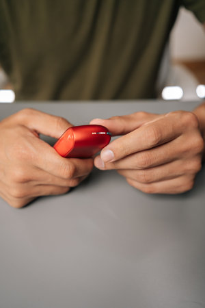 Cropped shot of man holding tobacco heating system, showcasing modern nicotine consumption method that may reduce harm compared to traditional cigarettes while raising health questions