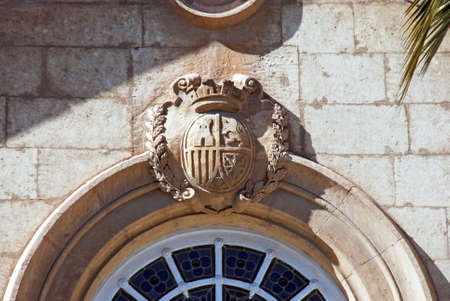 Stone bas-reliefs above the front door. Arms from different regions of Spain, in the Spanish village - Poble Espanyol