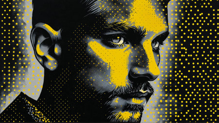 A silhouette of a king's face with a crown is presented against a yellow backdrop. The artwork features strong contrast with black and yellow colors, portraying bold lines. This graphical image could be suitable for various creative projects, including editorial design or visual communication.