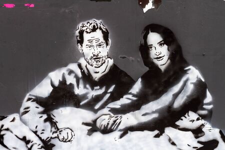 Prince Harry and Princess Meghan as a homeless couple - graffiti artwork by Loretto in 2018 in London