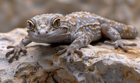 A detailed image showcasing a gecko clinging to a textured rock. Generate AI