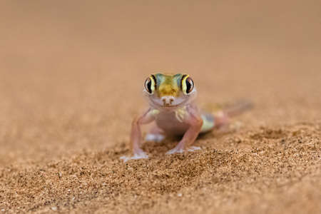 A Namib sand gecko, or gecko palmato, small colorful lizard in the Namib desert