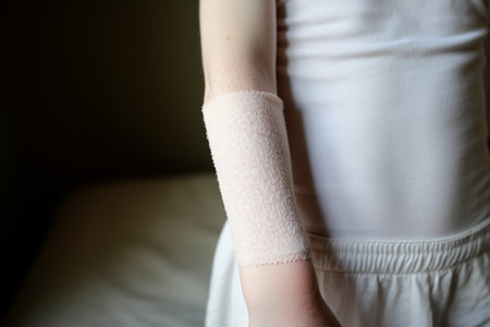 girl ties her leg in a white bandage
