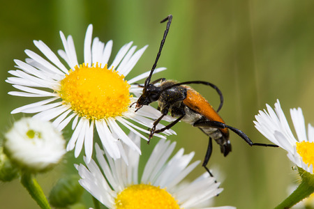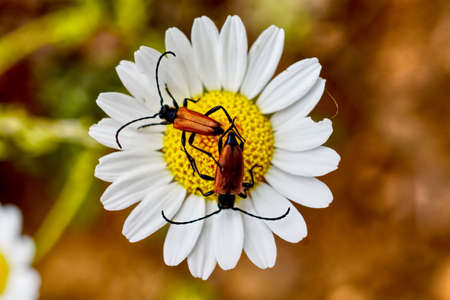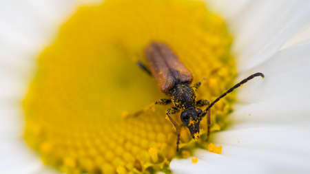 Beetle \\\\\\\Leptura rubra\\\\\\\ on a daisy flower. Macro shot.