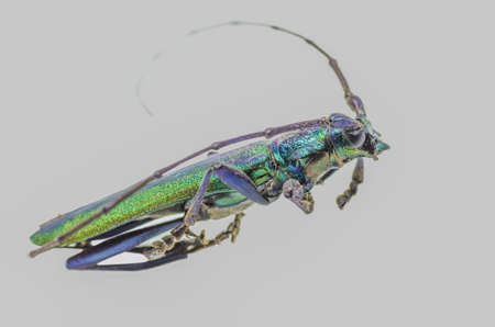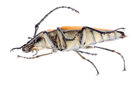 beetle pest insect, resident wildlife with a big mustache on white background closeup