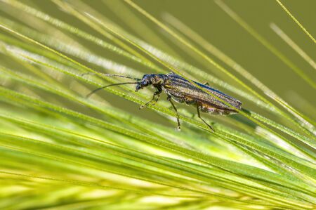 long-horned beetle closeup under natural conditions