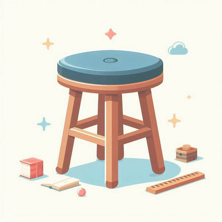 Vector illustration of wooden stool in flat style. Furniture for living room.