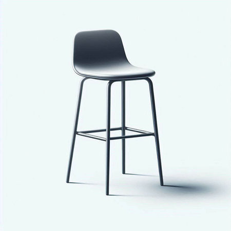 Furniture indoors and style. Black stool with four legs stand alone on wooden floor in blue room.