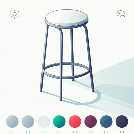 Bar stool with upholstered backless seat in an empty white room on a gray background.