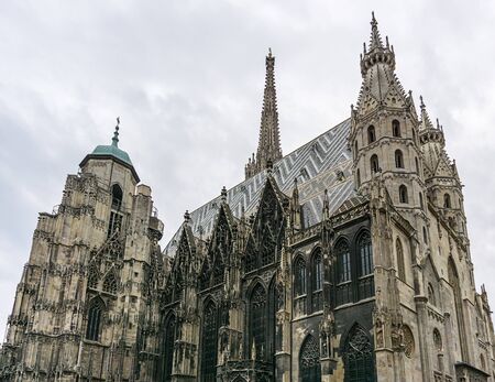 View of St. Stephen's Cathedral, cityscape. The mother church of the Roman Catholic Archdiocese of Vienna and the seat of the Archbishop of Vienna. Copy space.