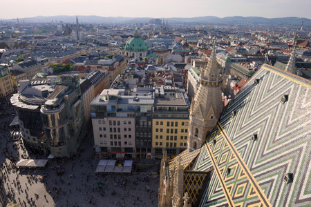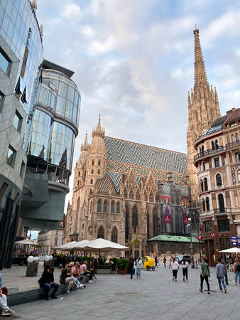 Vienna, Austria - September 16, 2019: Cityscape of Vienna with St. Stephens Cathedral in the center. This part of Vienna is a travel destinations for many tourists