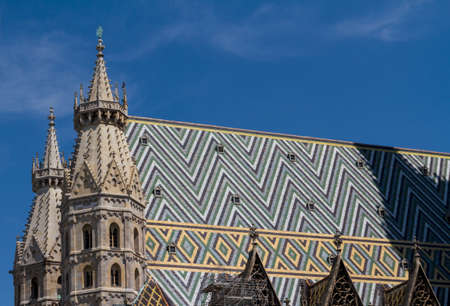 St. Stephans gothic cathedral. Multicolored rooftop in Vienna. Austria