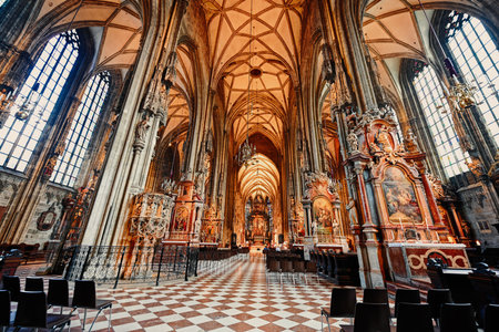 Vienna, Austria - May 17, 2022: St Stephen Cathedral interior in Vienna.