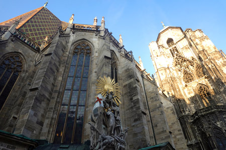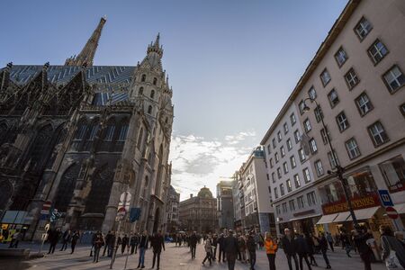 VIENNA, AUSTRIA, OCTOBER 23, 2019: Cathedral Stephansdom in central vienna during late afternoon light.