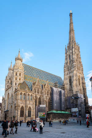 Vienna, Austria - March 29, 2013: Located on Stephansplatz, in the center of the city of Vienna, the Cathedral of St. Stephen called Stephansdom, shines in the sun.