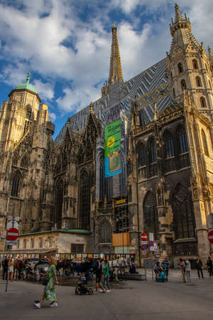 Vienna, Austria - June 2022: View with St. Stephen's Cathedral Medieval Roman Catholic church located in the center of Vienna.
