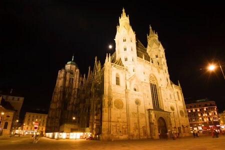 VIENNA, AUSTRIA-APRIL 26, 2018: St. Petersburg Stephen Cathedral on the night square