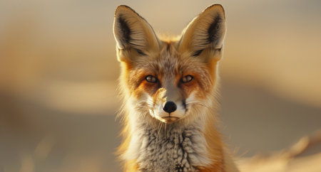 Desert Fox in desert landscape sunset