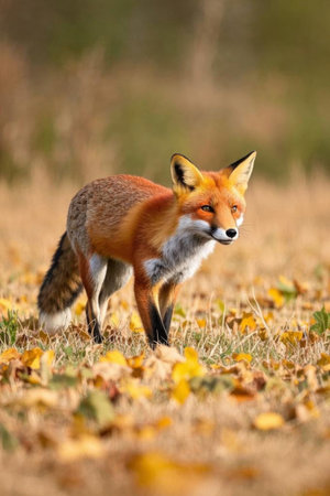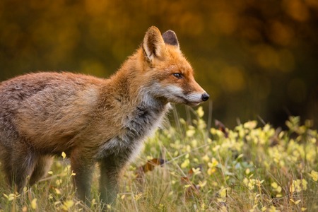Fox (Vulpes vulpes) hunting in europe forest