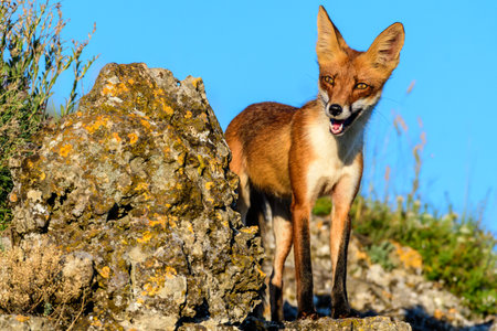 Red fox (Vulpes vulpes) standing on a rock