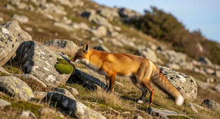 Magnificent red fox on a high altitude in the Sibillini Alps