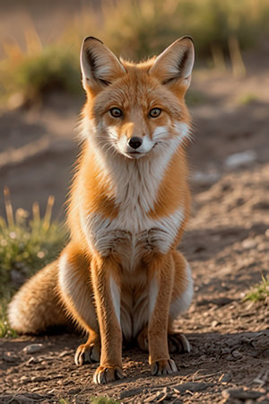 Red Fox (Vulpes vulpes) sitting on the ground