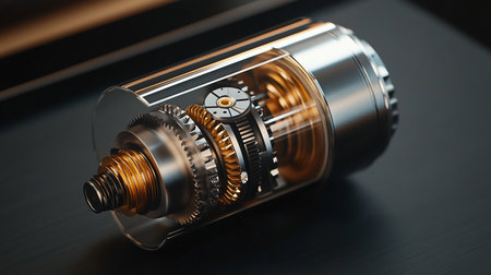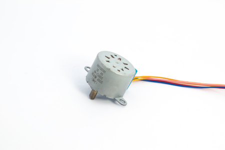 Close-up of a high precision servo motor with metallic gears and intricate wiring for industrial automation applications