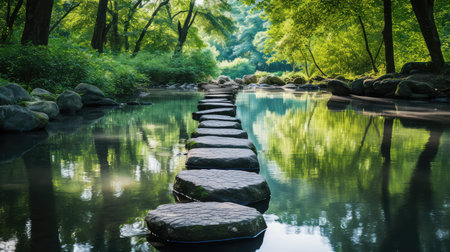 AI Generated. Smooth Stepping Stones on Tranquil Water