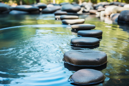 Tranquil blue water and stepping stones zen oasis for relaxation and meditation