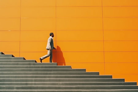 Ambitious Businessman Climbing Stairs to Reach Success - Determination and Achievement