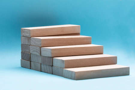 Close-up Of Wooden Building Block Stacked Over Blue Backdrop