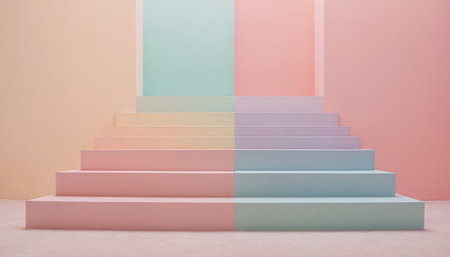 A Colorful stairs create vibrant atmosphere, showcasing proud progress in empty space