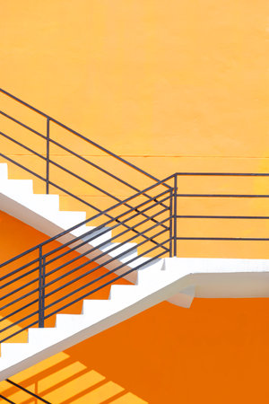 Fire escape on orange concrete wall outside of modern office building in vertical frame, Exterior architecture background in minimal design