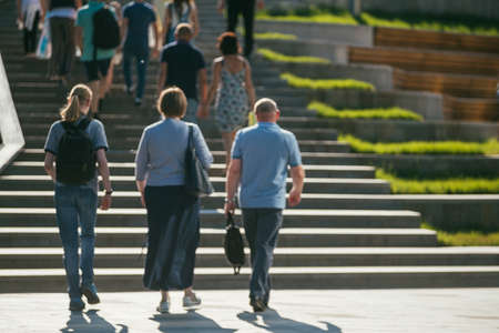 Business people climb the steps of the city stairs. impersonal rising up. Career growth and advancement. Increasing and improving skills. Salary increase