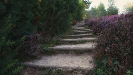 Stairs the sandy hill up in the heathlands of the Veluwe National Park in the Netherlands