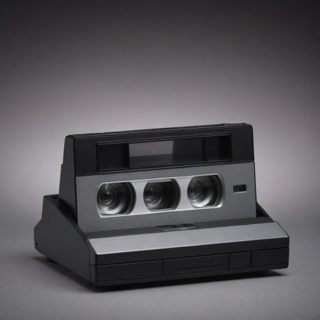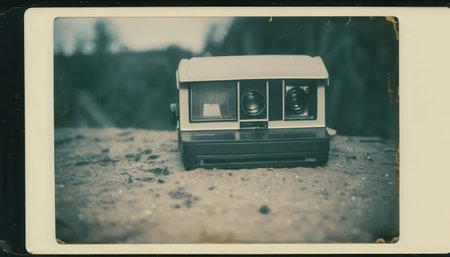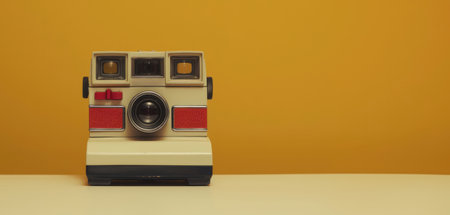 Vintage analog camera with clean lines and retro color palette, symbolizing the nostalgia, snapshots from the 80s