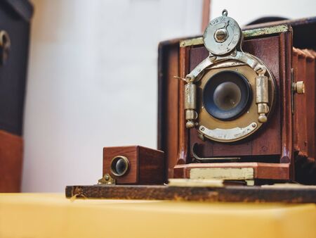 Old retro vintage camera photography copyspace. Obsolete nostalgia style.