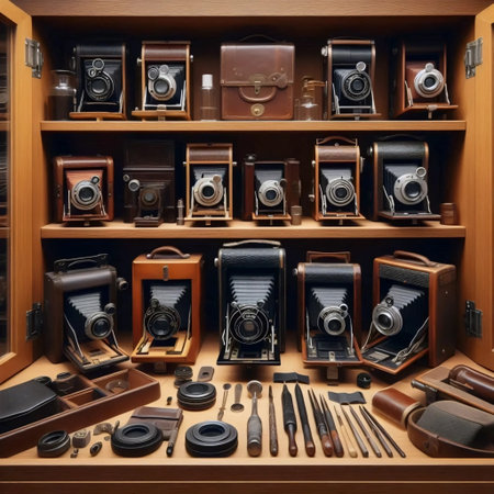 Nostalgic Shots: Vintage Photo Equipment Captured in Isolation on a White Background with an Aspect Ratio of 3:2
